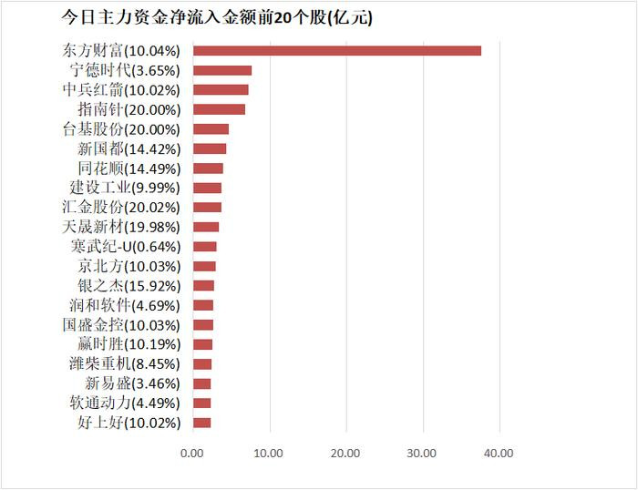 4.东方财富(300059)主力资金净流入37.59亿元居首
